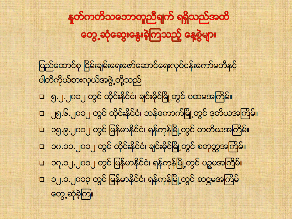 တရားဝင်နိုင်ငံရေးပါတီတစ်ရပ်အဖြစ် ပြည်တွင်းတွင် ပြန်လည်ရပ်တည်ရေးဆိုင်ရာ ဆောင်ရွက်ခဲ့မှုများ Slide04 Image 4 of 27